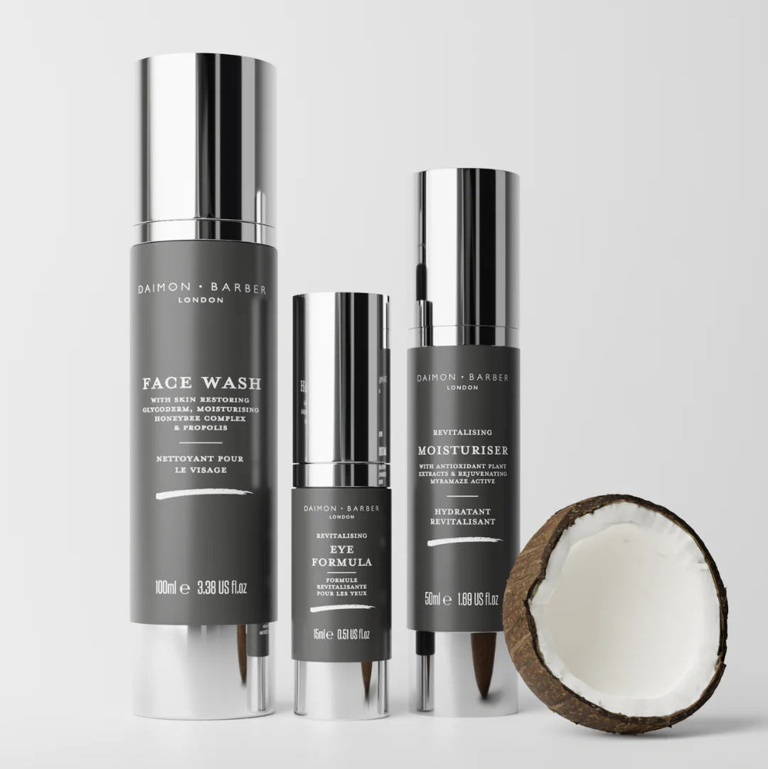 Cildi temizleyen, nemlendiren ve canlandıran bu kapsamlı set, Daimon Barber Age Defence Yüz Temizleyici, Nemlendirici ve Göz Serumu ile eksiksiz bir bakım sunar.